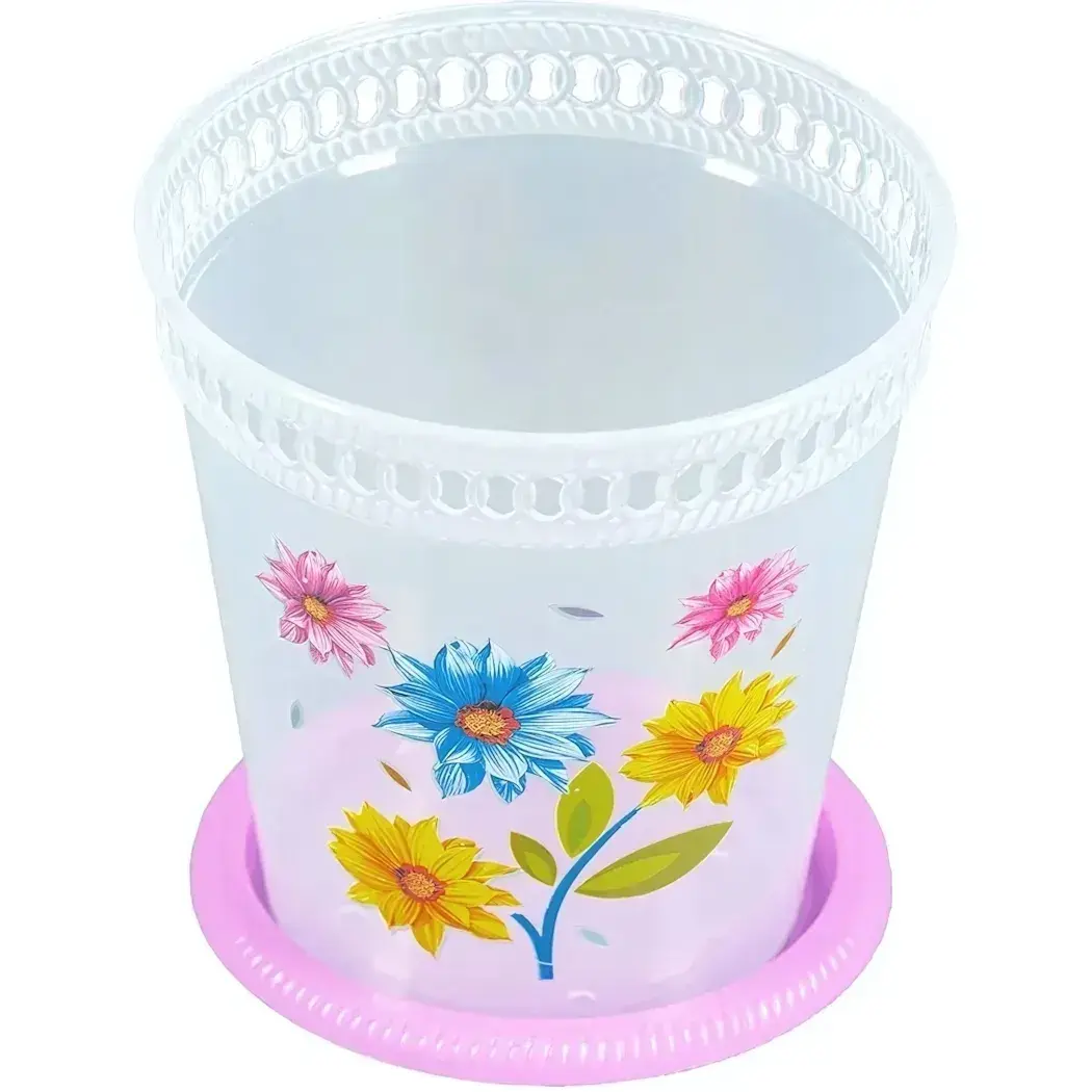 Прозрачное кашпо с цветочным принтом создано специально для выращивания орхидей. Декоративная отделка в виде ажурной цепочки по краю добавляет изысканности, а компактные размеры позволяют разместить растение на любом подоконнике.