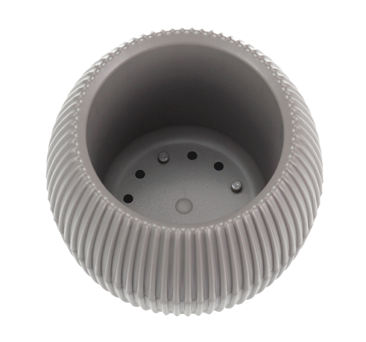 6 дренажных отверстий обеспечивают циркуляцию воздуха, а съёмный поддон позволяет контролировать уровень влаги. Серый цвет в пастельных тонах гармонично сочетается с любым стилем оформления — от скандинавского минимализма до эко-лофта.