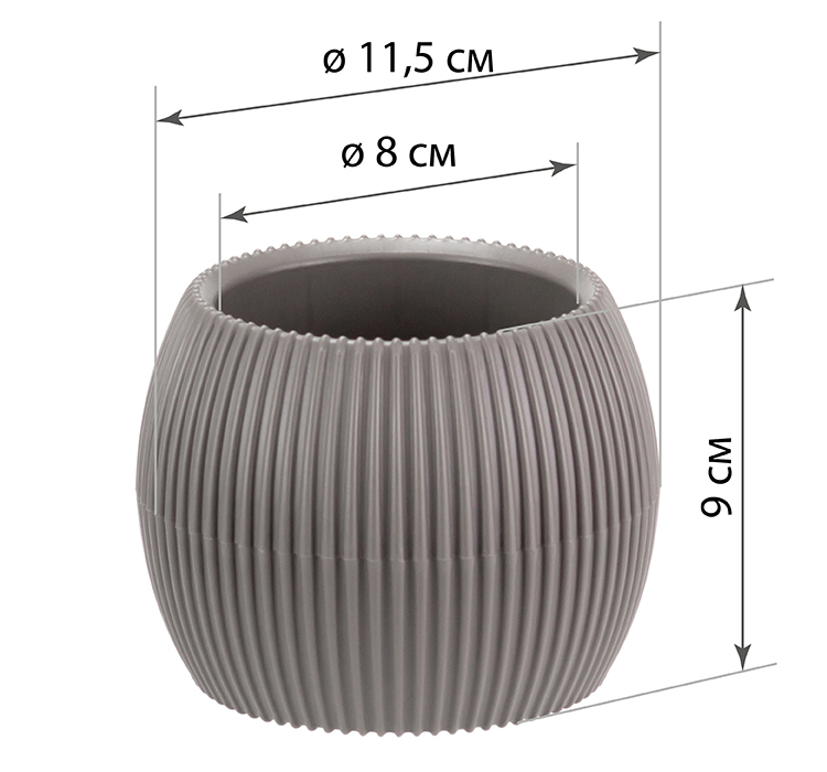 Кашпо пластиковое круглое "ПИКАНТО" с поддоном, 0,35 л, D11,5 см, вертикальные линии, серый