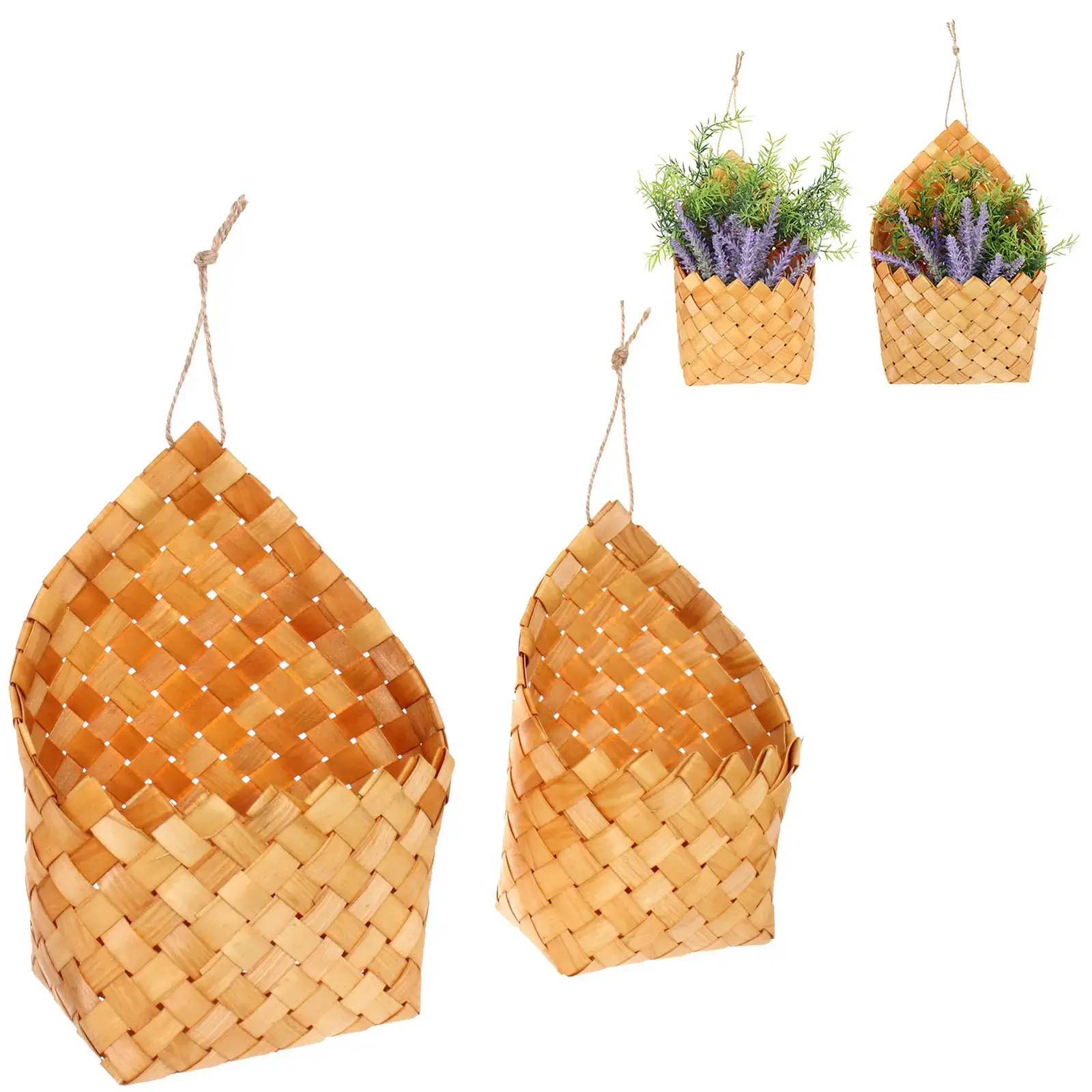 Плетеные кашпо из натурального дерева создадут атмосферу тепла и гармонии в интерьере. Идеально подходят для подвесного размещения цветов, хранения мелочей или создания стильных композиций.