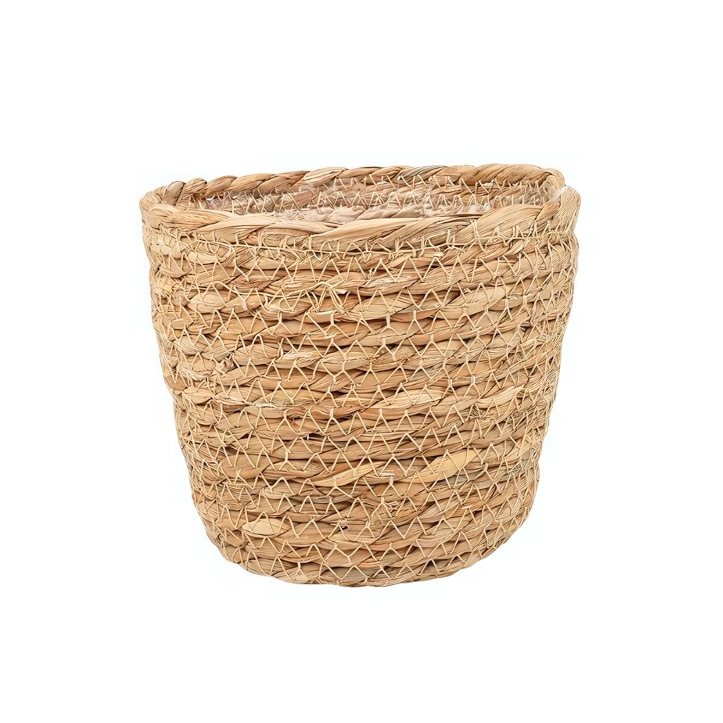 Материал изделия — рогоз и полипропилен — обеспечивает долговечность и экологичность. Размер: внешний диаметър 165 мм, высота 145 мм, объем 1,5 литра, что идеально подходит для небольших и средних растений.