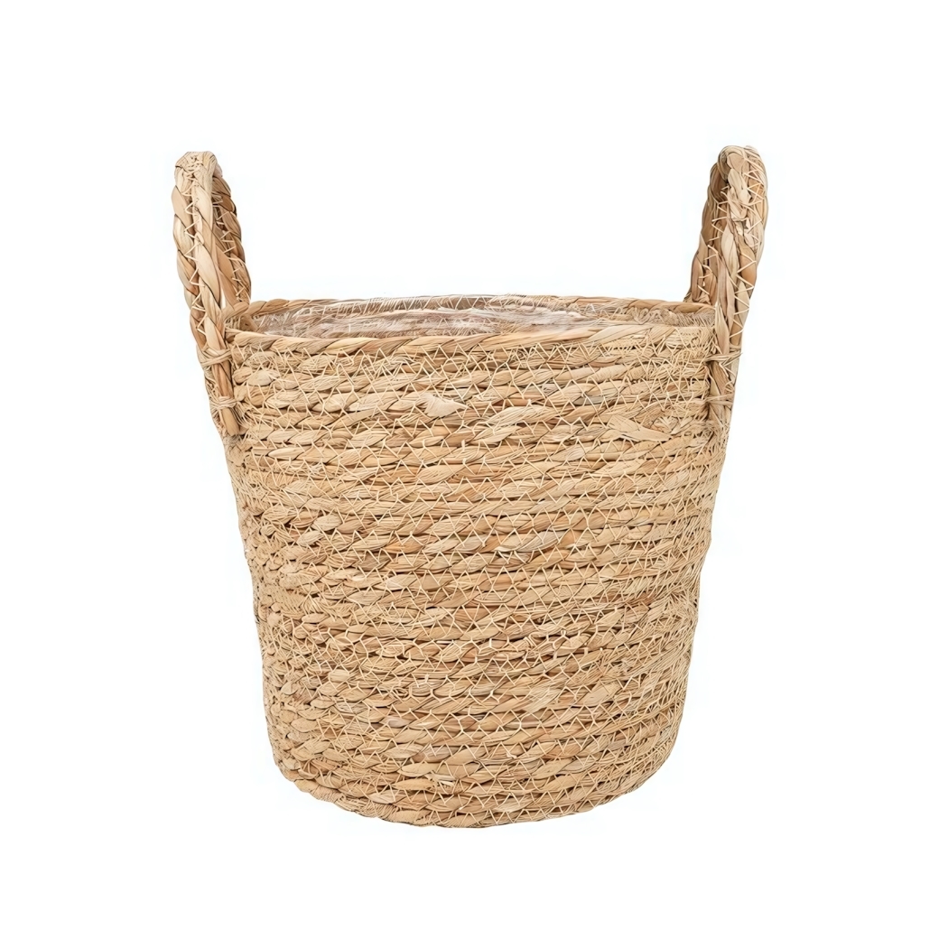 Простая цилиндрическая форма, легкие ручки по бокам и объем 2,5 литра позволяют использовать кашпо для размещения комнатных цветов, декоративных композиций или хранения мелких предметов. Оно гармонично дополнит эко, кантри, сканди или бохо-интерьеры, а натуральный светло-бежевый оттенок подойдет к любому стилю.
