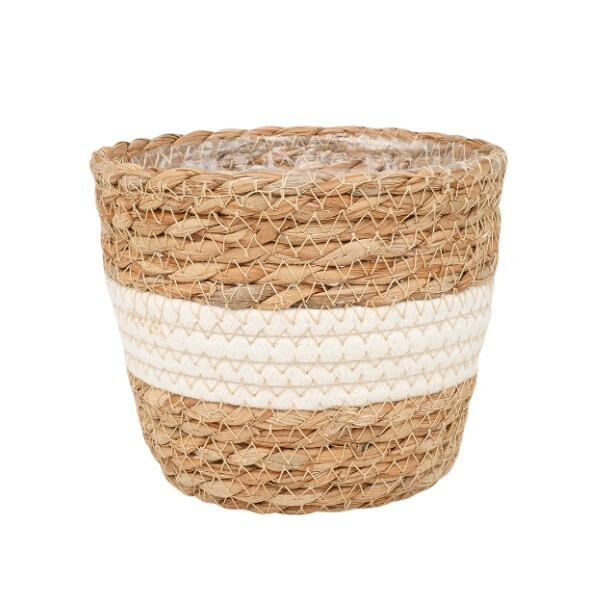 Изготовленное из натуральных материалов — рогоза, хлопкового шнура и полипропилена — оно сочетает прочность с эстетичностью. Натуральный цвет и ручная плетенка подчеркнут природную гармонию и добавят уют в ваш дом. Благодаря качественной сборке и использованию современных материалов, это кашпо прослужит долго и будет радовать глаз.