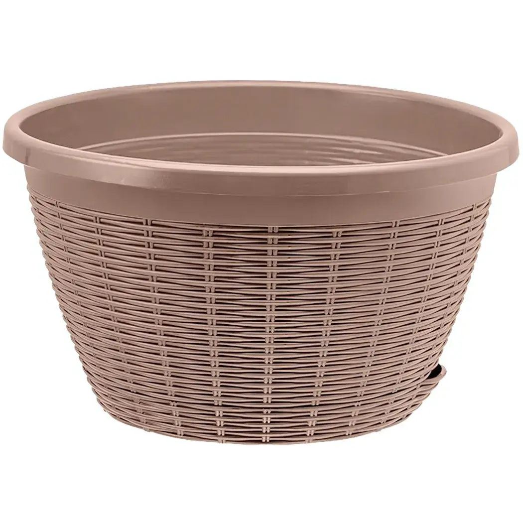 Преобразите пространство с помощью кашпо, сочетающего природную эстетику и современные технологии. Имитация ручного плетения создаёт эффект натуральной лозы, а практичный пластик сохраняет привлекательный вид годами.