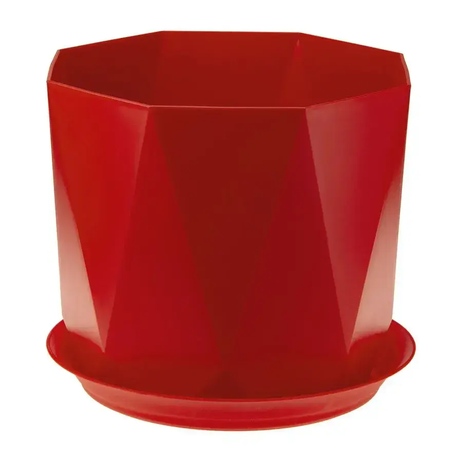 Кашпо пластиковое 'ПРИЗМА' 1л с поддоном, D130мм, цвет красный