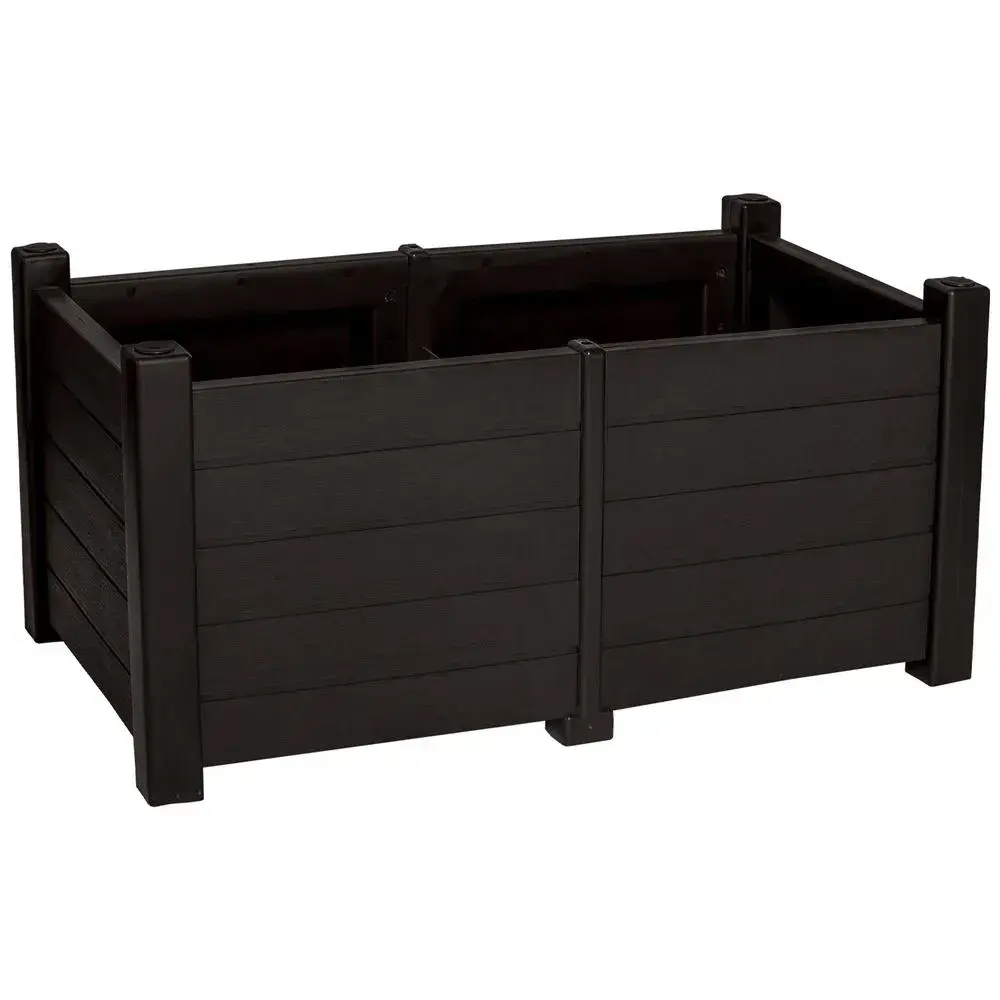 Габариты: 970×470×470 мм (Д×Ш×В). Вес пустой емкости: 3.8 кг. Материал изготовления — полипропилен с УФ-стабилизаторами. Цветовое решение в шоколадной гамме органично впишется в стиль прованс или классический садовый дизайн.