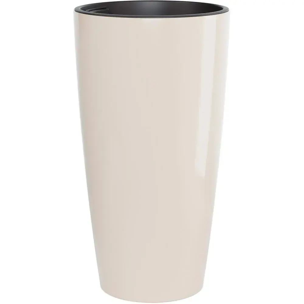 Кашпо пластиковое «Рондо» 35л со вставкой 15л, бежевый с черной отделкой, для цветов