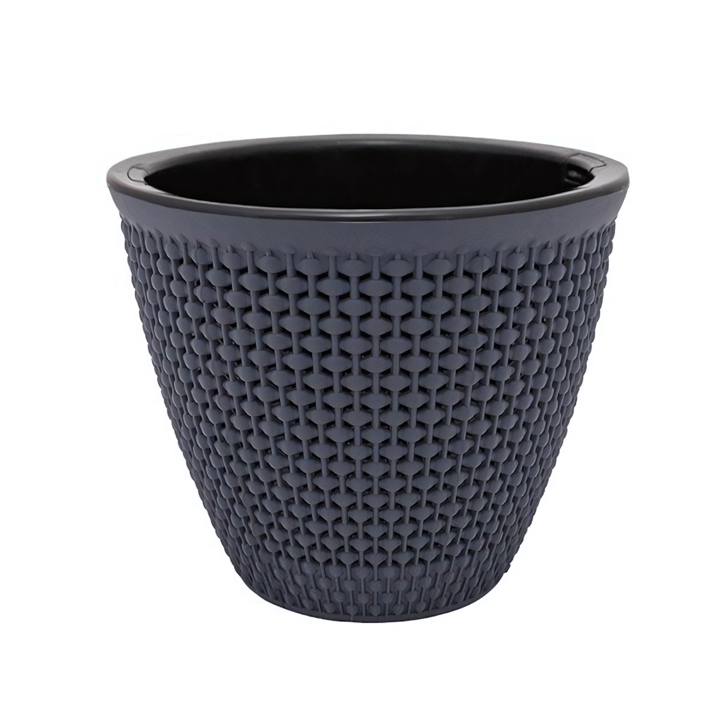 Это пластиковое кашпо серии 'Ротанг' выполнено в демократичном цвете антрацит и идеально подойдет для украшения вашего дома или сада. Благодаря аккуратному плетеному дизайну оно гармонично сочетается с любыми интерьерными стилями и создает уютную атмосферу.