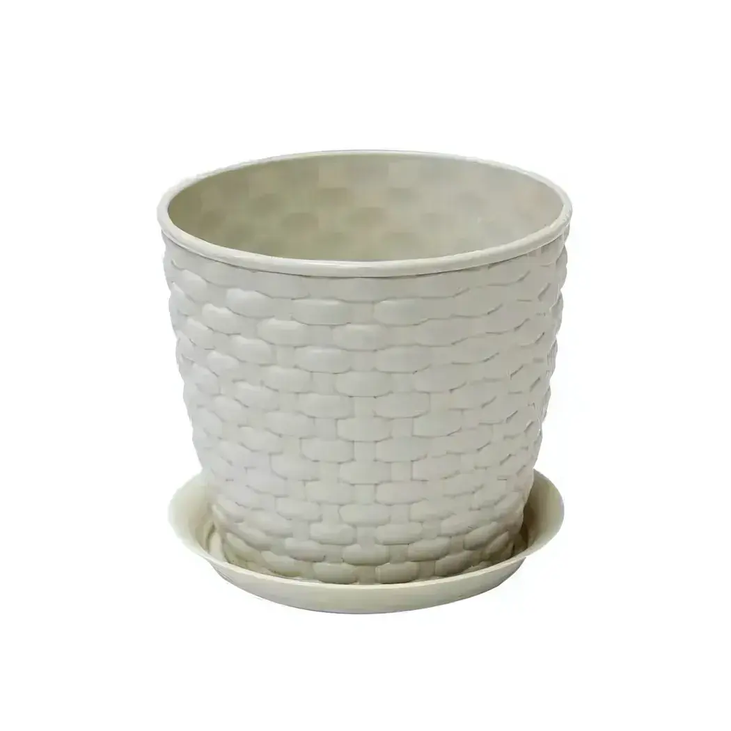 Кашпо пластиковое 'РОТАНГ' D135мм, с поддоном, белый ротанг, 0.12л