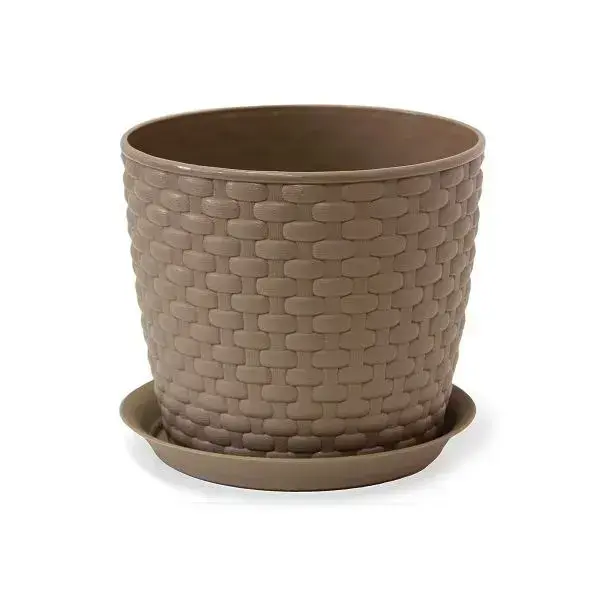 Кашпо изготовлено из высококачественного пластика с детальной имитацией плетения ротанга. Диаметр 155 мм оптимально подходит для небольших и средних растений. Дизайн с поддоном обеспечивает дополнительную защиту мебели от влаги.