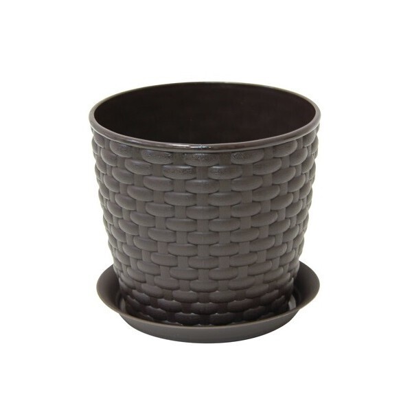 Кашпо пластиковое "РОТАНГ" D180мм, бежевый, с поддоном, объем 3л