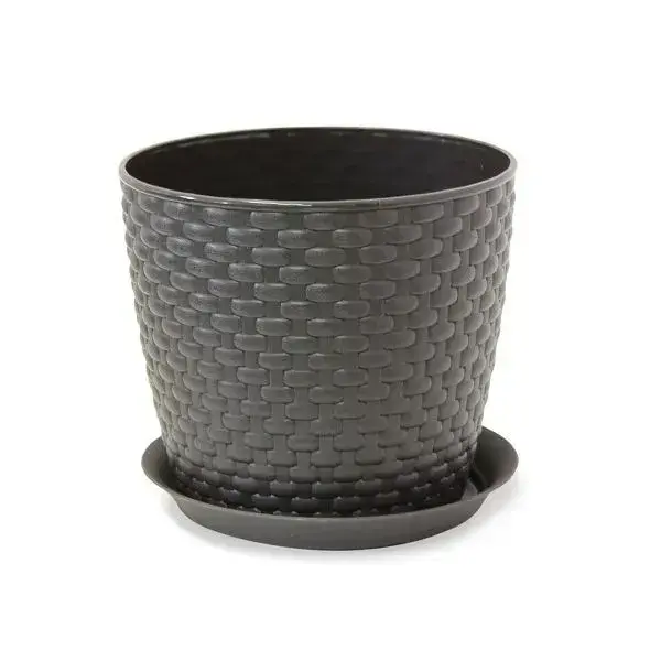 Кашпо пластиковое с поддоном, комплект 24 шт, 3л, диаметр 18 см, имитация ротанга, коричневый