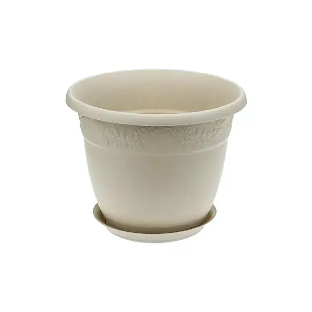 Кашпо пластиковое «Рябина» с поддоном, диаметр 350 мм, 14.7 л, цвет латте, дренажная система