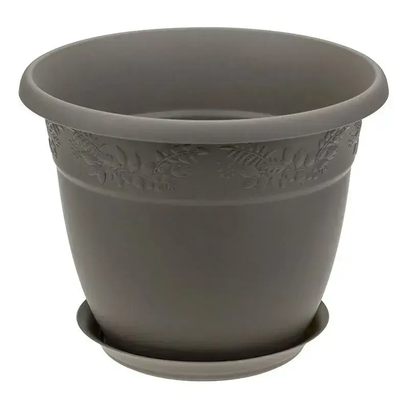 Пластиковое кашпо «Рябина» сочетает в себе стильный дизайн и практичность. Рельефный узор в виде растительных мотивов добавит изысканности вашему интерьеру или саду, а матовая поверхность серого цвета гармонично впишется в любую обстановку.