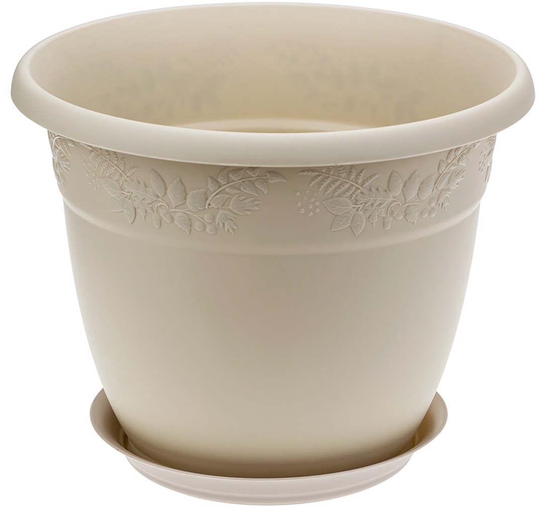 Кашпо пластиковое "РЯБИНА" с поддоном D160мм, цвет латте, объем 1,4л