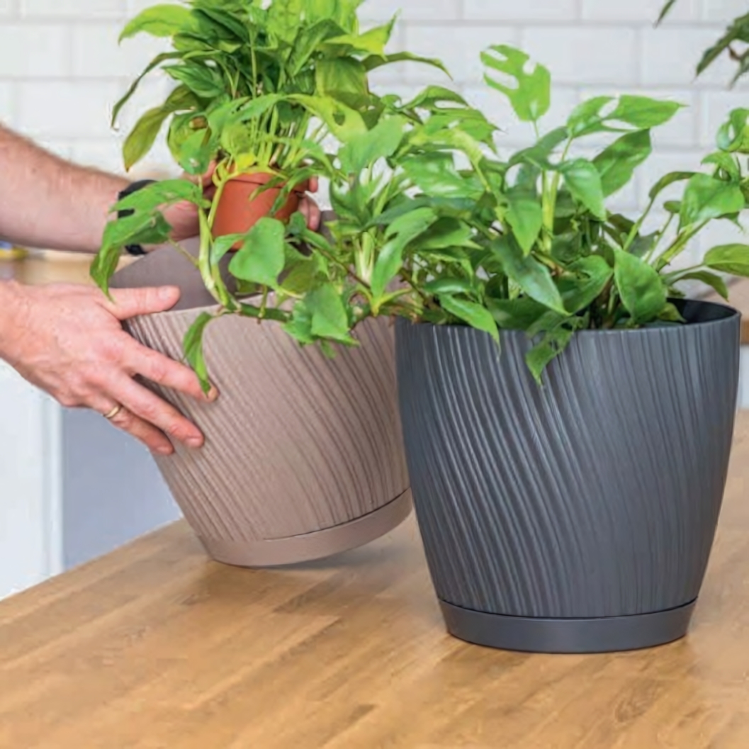 Модель подходит для размещения комнатных цветов в стандартных технических горшках или для пересадки растений напрямую. В комплекте предусмотрена подставка, которая защищает поверхность от лишней влаги и помогает поддерживать чистоту. Оптимальный диаметр 17 см и высота 15 см делают кашпо универсальным решением для большинства декоративно-лиственных и цветущих растений.