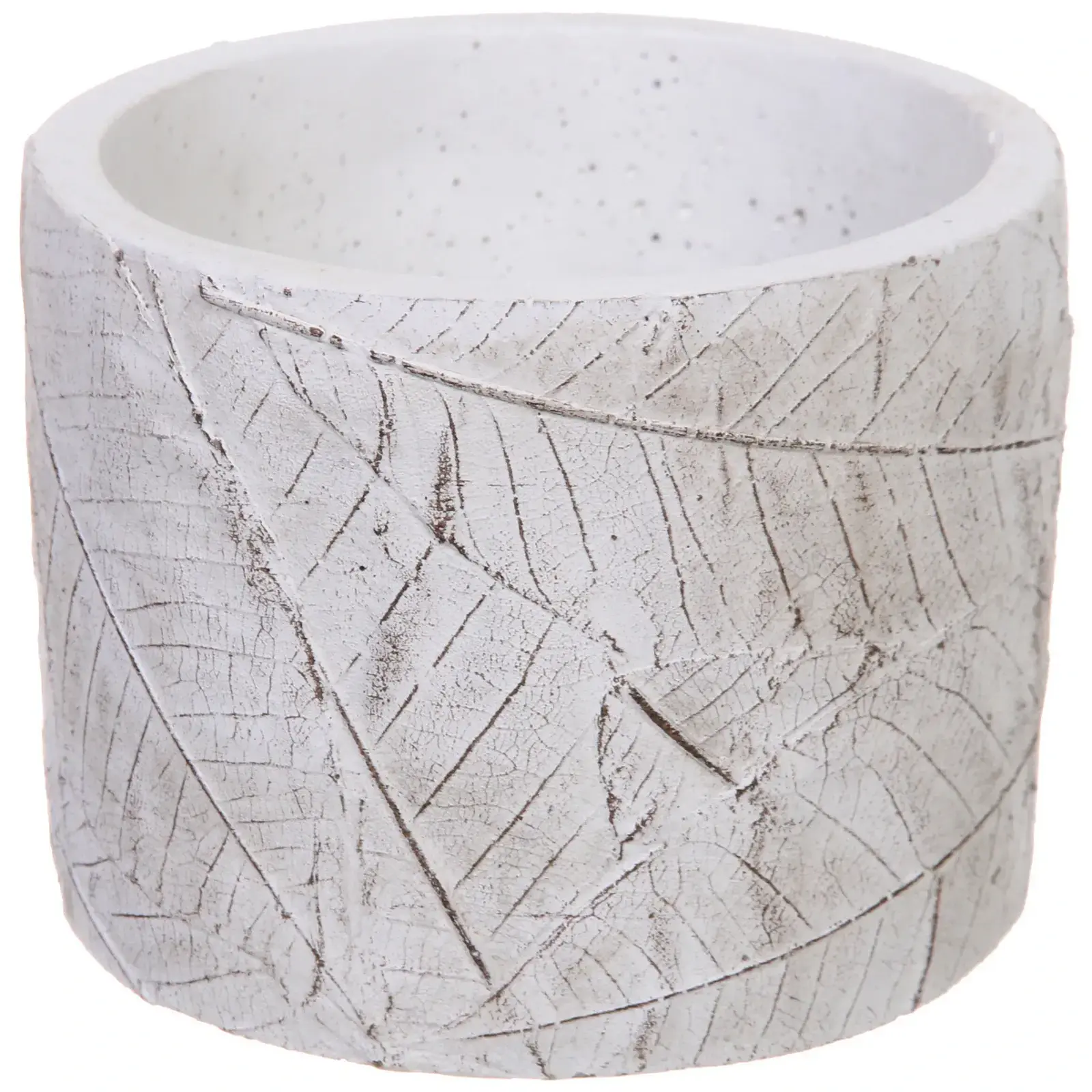 Кашпо выполнено в светло-сером цвете с текстурой, имитирующей листья, что придает ему особый шарм. Внутренняя сторона гладкая и белая, что облегчает уход за растениями. Это кашпо станет не только функциональным, но и эстетически привлекательным элементом вашего сада или дома.