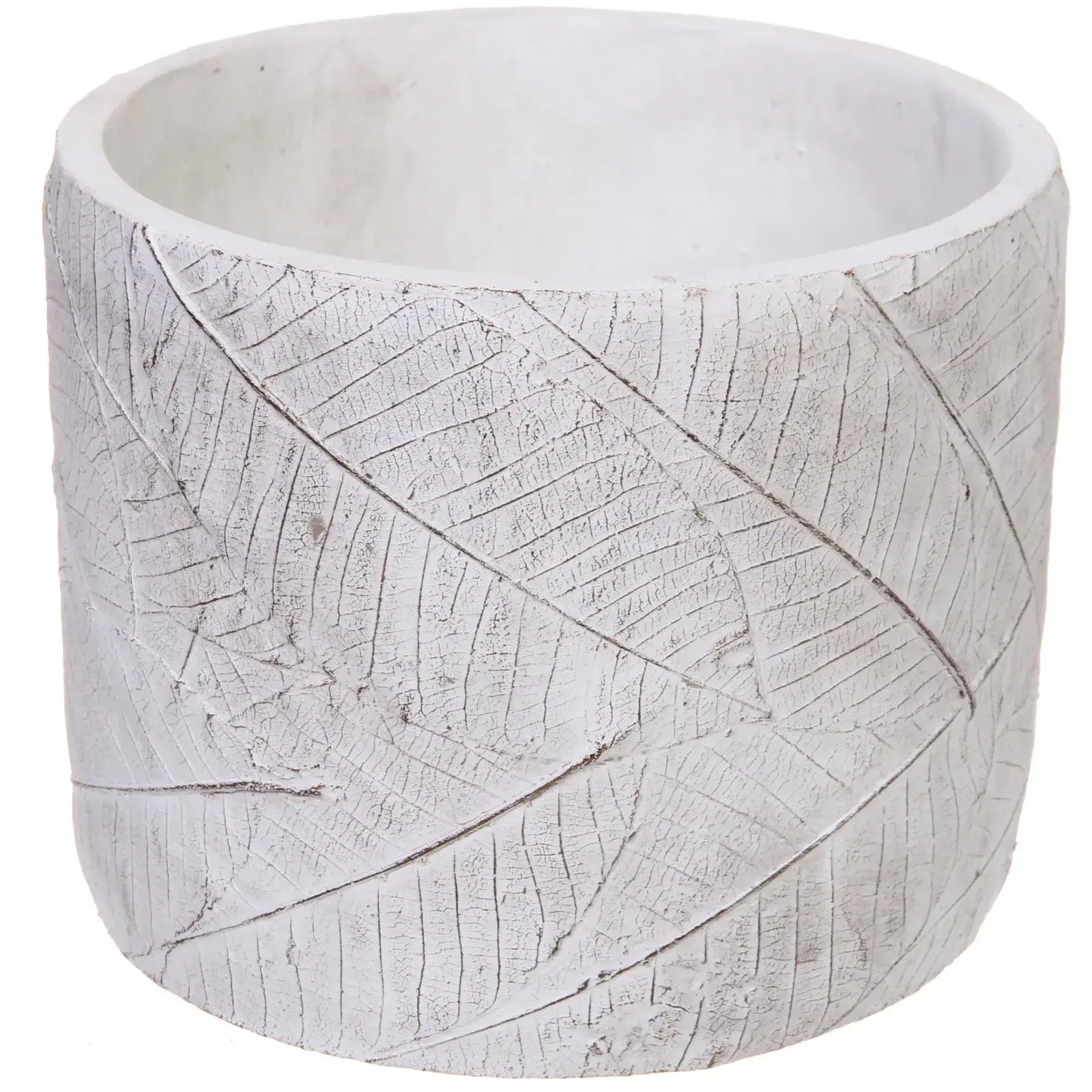 Размеры кашпо составляют 17 см в диаметре и 14,5 см в высоту, что делает его компактным и удобным для размещения на подоконниках, террасах или в саду. Светлый цвет и рельефный узор листьев придают изделию особый шарм и текстурный эффект, который будет радовать глаз.
