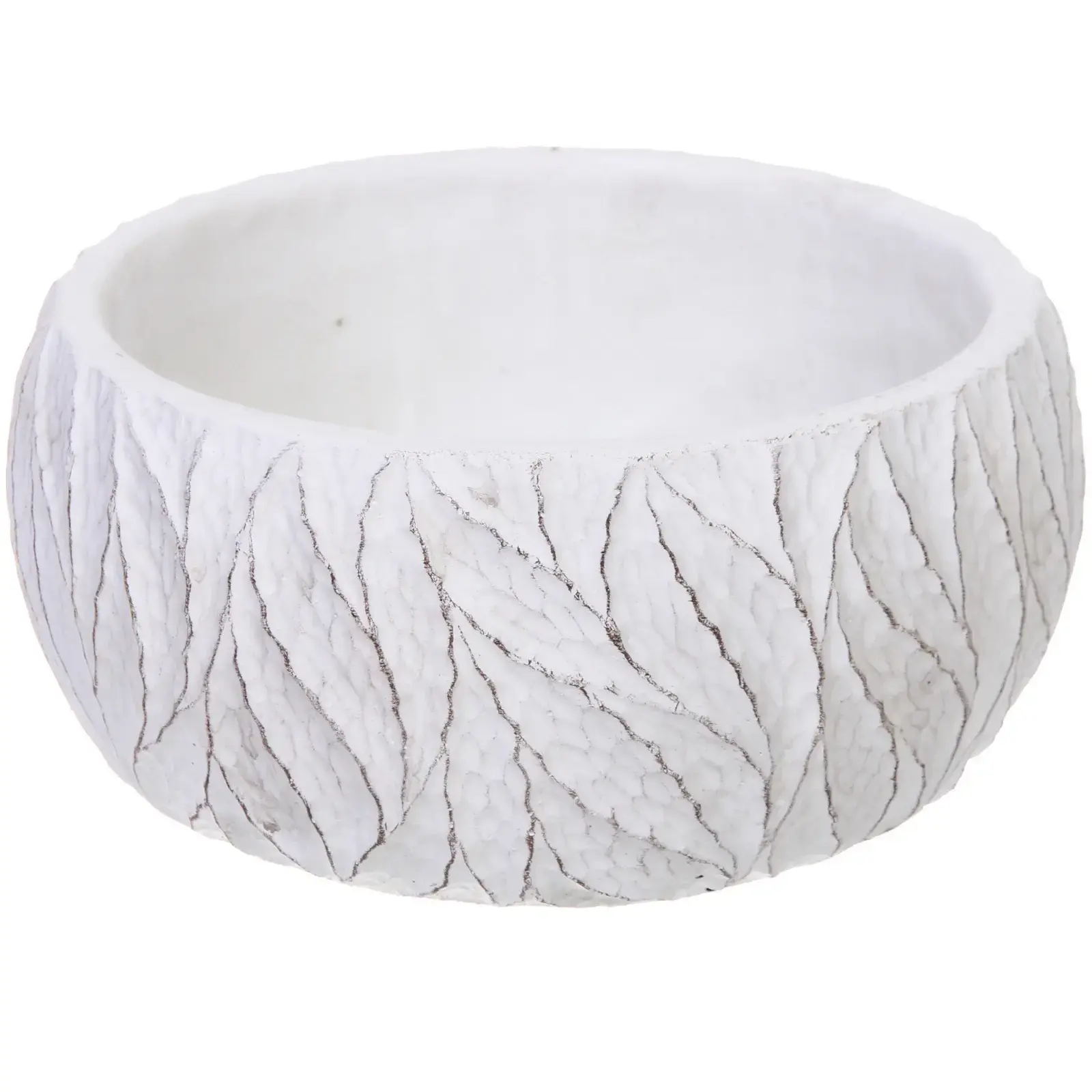Кашпо выполнено в белом цвете, что делает его универсальным для любого дизайна. Рельефный узор добавляет текстурности и интереса к изделию. Это кашпо станет не только функциональным, но и эстетически привлекательным элементом вашего пространства.