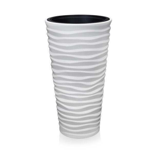 Элегантное кашпо "Sandy" станет идеальным решением для ценителей минимализма и функциональности. Благодаря нейтральному белому цвету и изысканной текстуре волнообразного рельефа, оно гармонично впишется в любой интерьер.