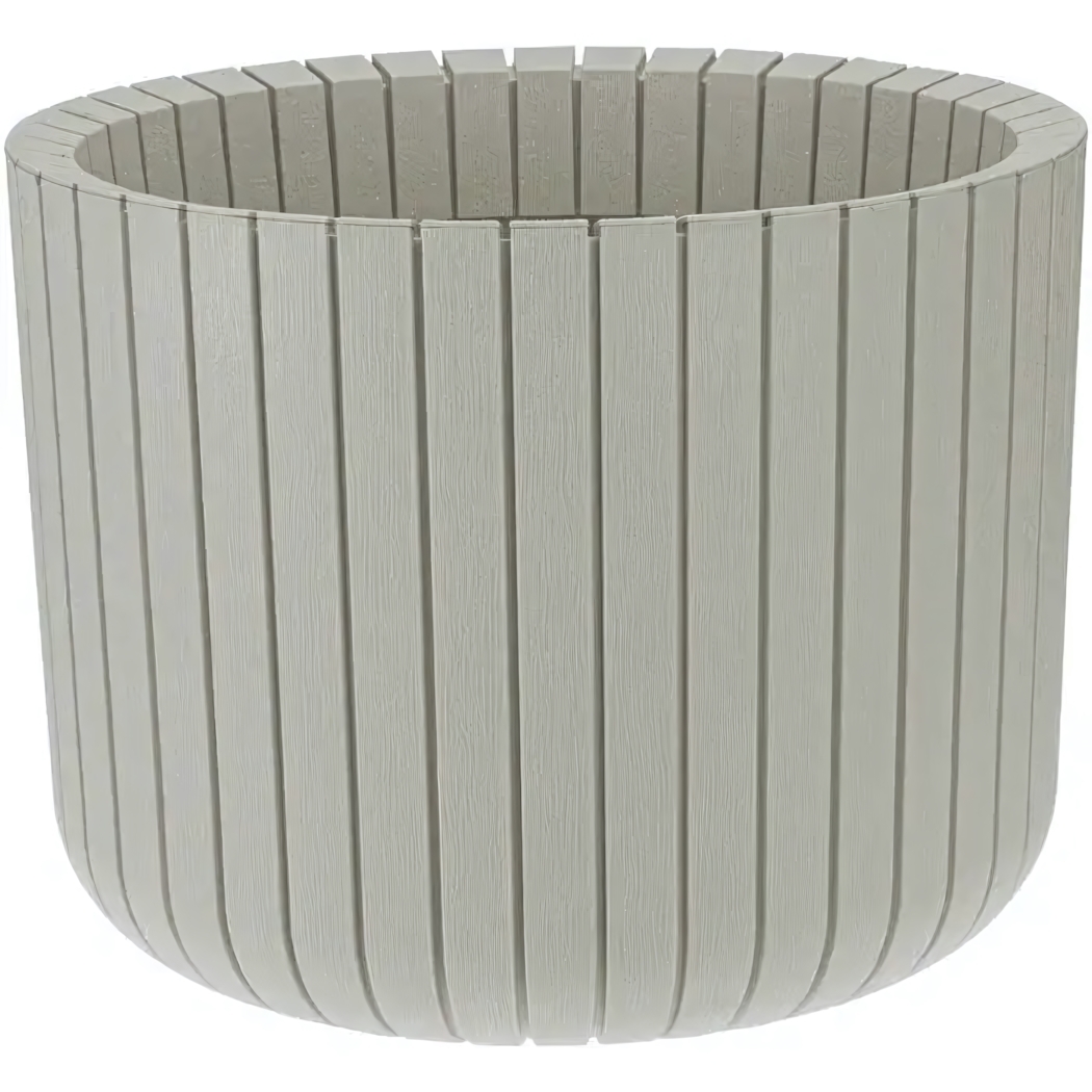Пластиковое кашпо Idea сочетает практичность и стильный дизайн, создавая оптимальные условия для роста растений. Цилиндрическая форма с вертикальными ребрами жесткости обеспечивает устойчивость, а текстура под натуральный ротанг добавит уюта в интерьер или сад.