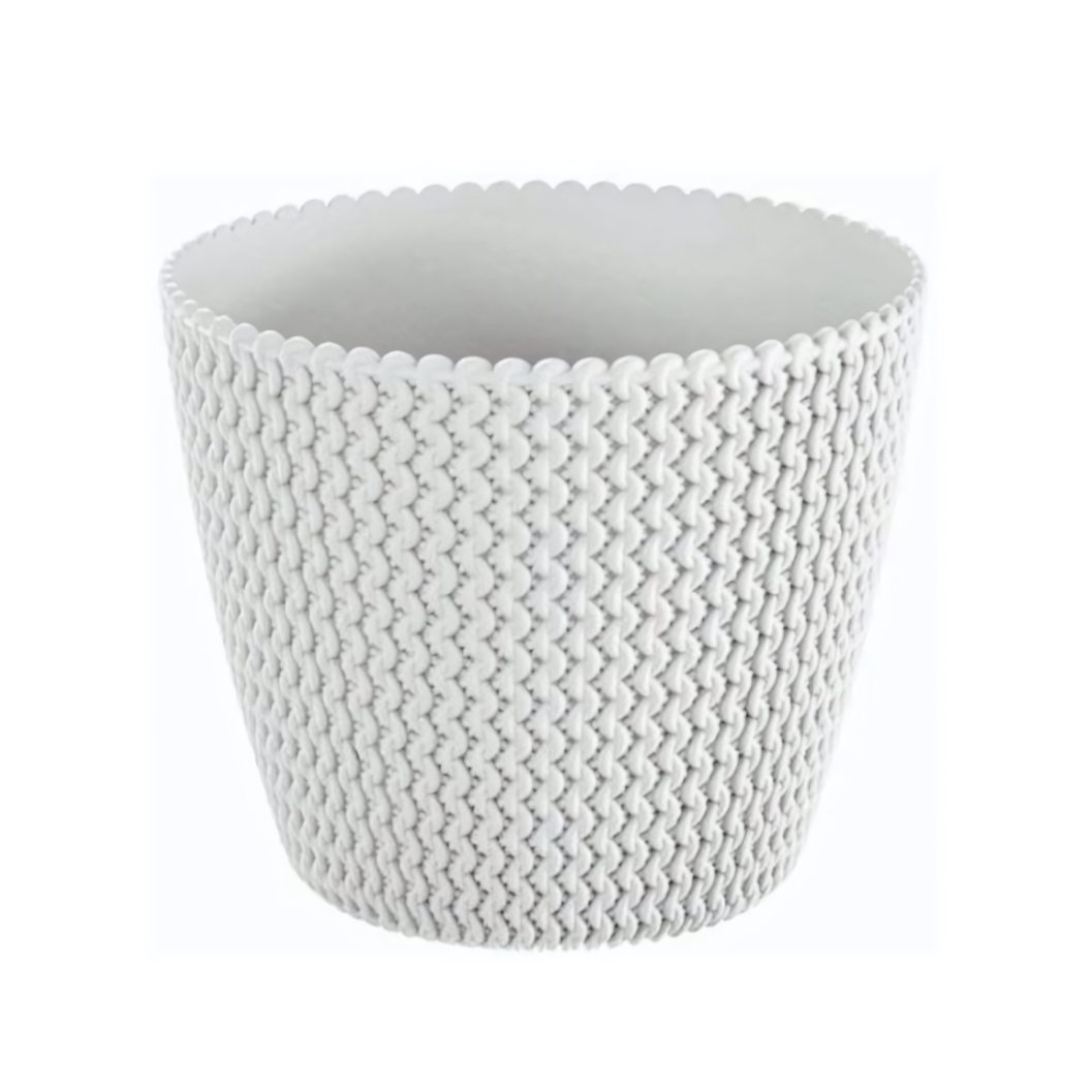 Кашпо SPLOFY объемом 8 л — это практичное и эстетичное решение для оформления комнатных растений. Лаконичный белый цвет легко вписывается в любой интерьер, а оригинальная рельефная фактура с имитацией вязки добавляет уюта и визуального тепла. Такое кашпо не просто дополняет растение, а становится полноценным элементом декора.