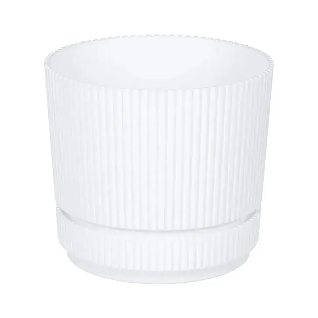 Кашпо с подставкой сочетает эргономичный дизайн и устойчивость, создавая идеальные условия для роста комнатных цветов. Рифлёная поверхность и утолщённое дно гарантируют надёжную фиксацию, а лаконичный белый цвет гармонично впишется в любой интерьер.