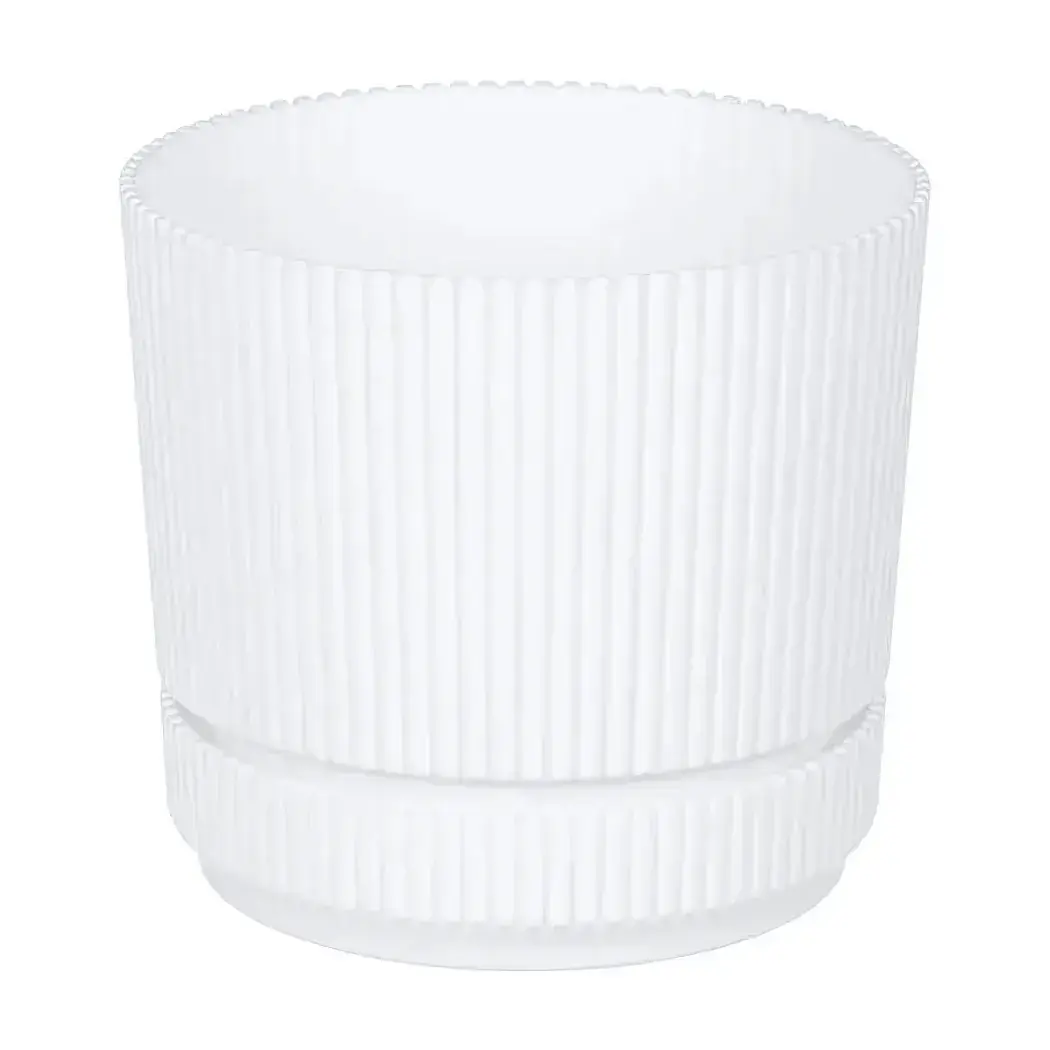 Кашпо пластиковое 'СТРИП' 1,3л с подставкой, диаметр 140мм, белый
