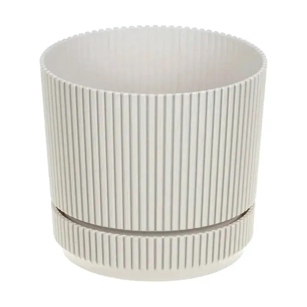 Кашпо пластиковое "СТРИП" с подставкой, D140мм, 1,3л, кремовый — устойчивое, дренажные отверстия