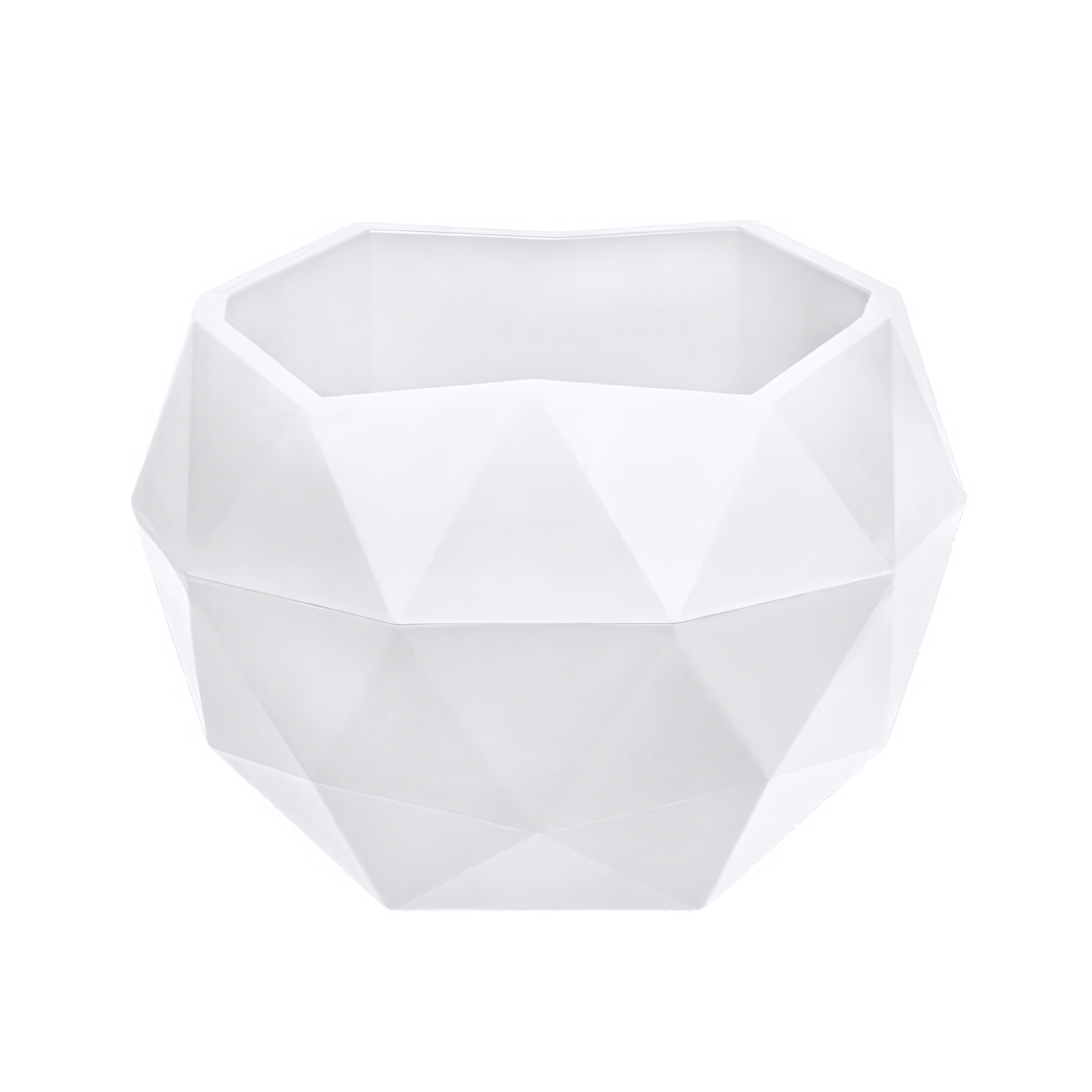 Кашпо выполнено в белом цвете, что делает его универсальным для любого стиля оформления. Многоугольная форма создает эффект трехмерности, добавляя интересный акцент в ваш интерьер. Размеры кашпо позволяют использовать его как в помещениях, так и на открытых балконах или террасах.