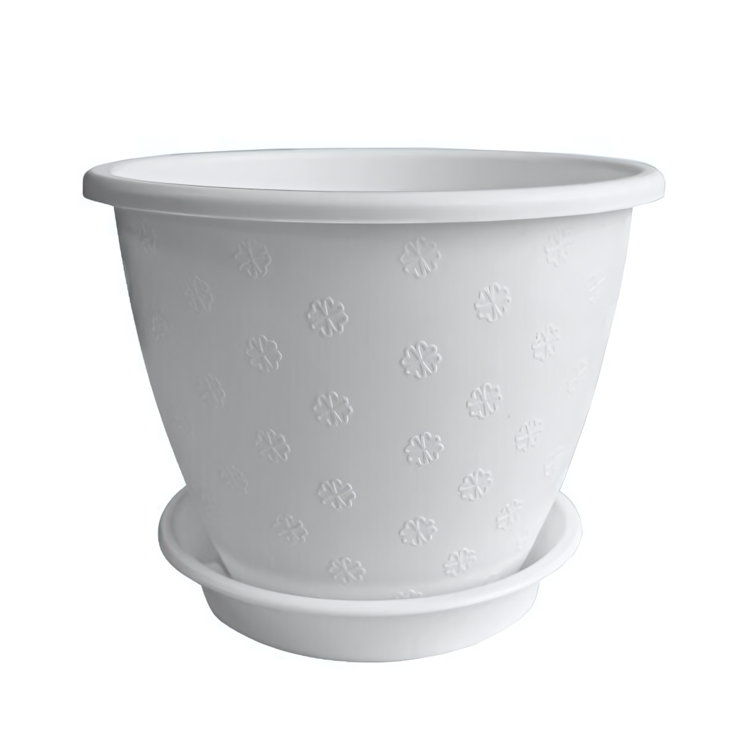 Кашпо пластиковое "Цветочек" 1,2л, белое, с поддоном, для домашних растений
