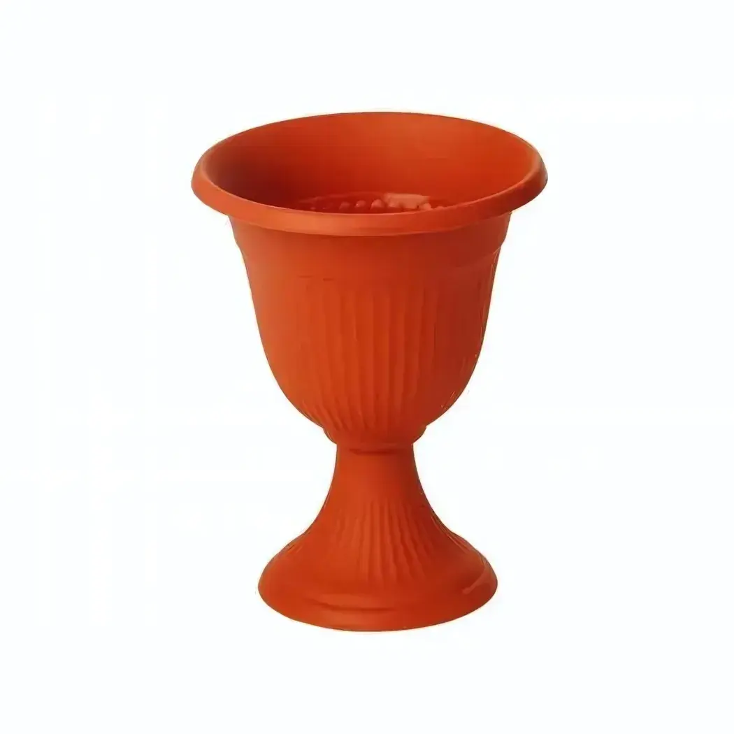 Объемное кашпо-вазон создано для истинных ценителей садового искусства. Его 12,6-литровая емкость обеспечивает простор для корневой системы крупных растений, а терракотовый оттенок придает натуральность и прекрасно вписывается в любой ландшафт.