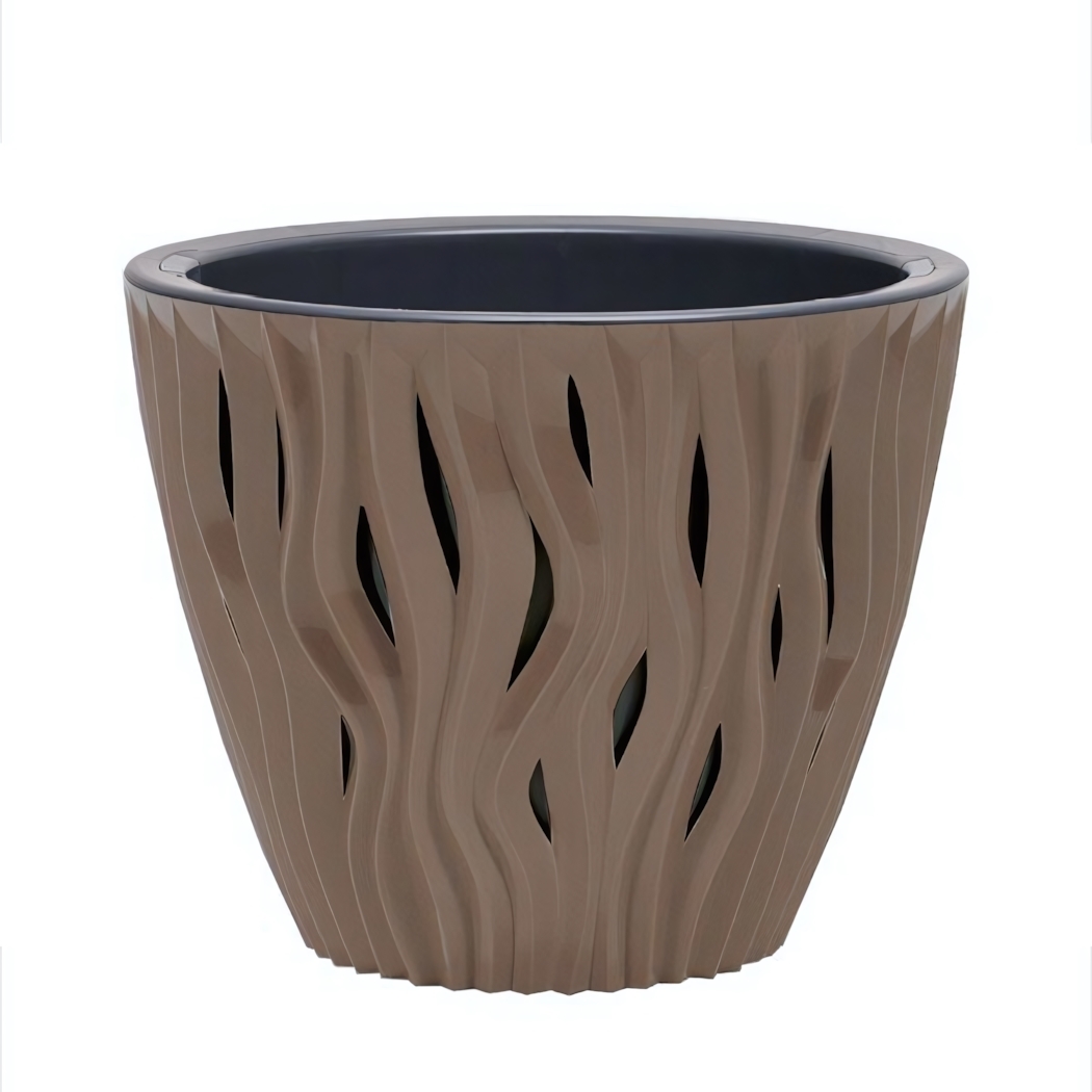 Кашпо пластиковое «Вдохновение» 1,6л, цвет мокачино, рельефная поверхность, для комнатных растений