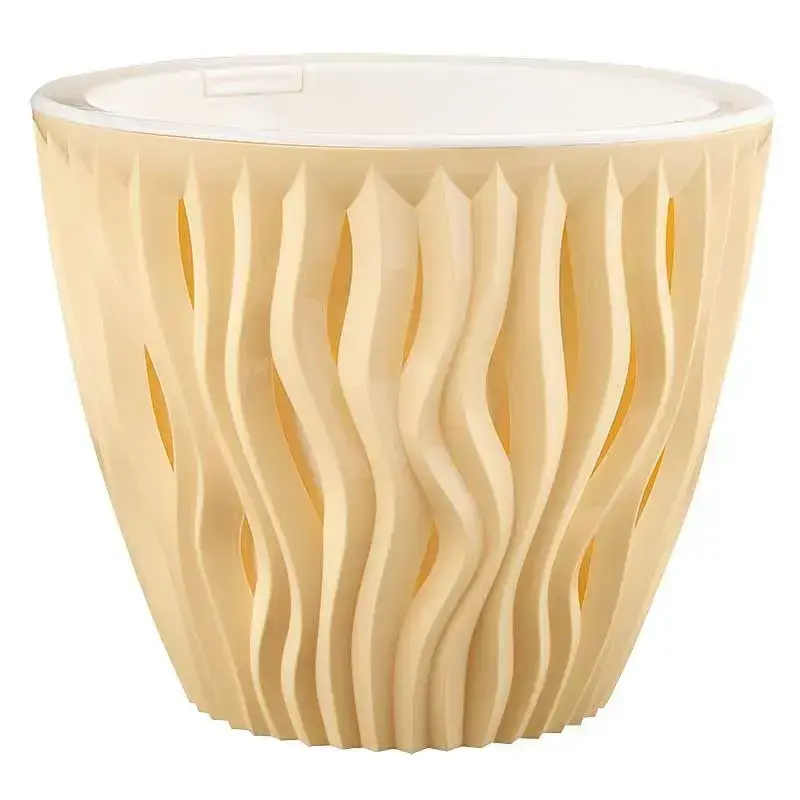 Пластиковое кашпо "Вдохновение" сочетает практичность и современный дизайн. Рифлёная поверхность с волнообразными линиями создаёт эффект ручной работы, а солнечный жёлтый цвет добавляет интерьеру теплых акцентов.
