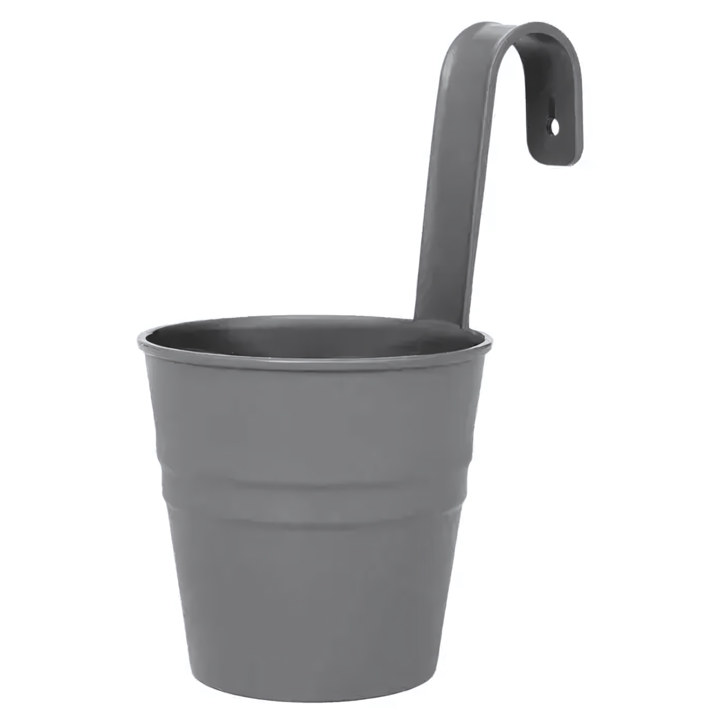 Практичное настенное кашпо-ведро в матовом сером цвете станет идеальным решением для оформления балкона, террасы или сада. Благодаря лаконичному дизайну и прочному крюку оно органично впишется в любой интерьер и ландшафт.