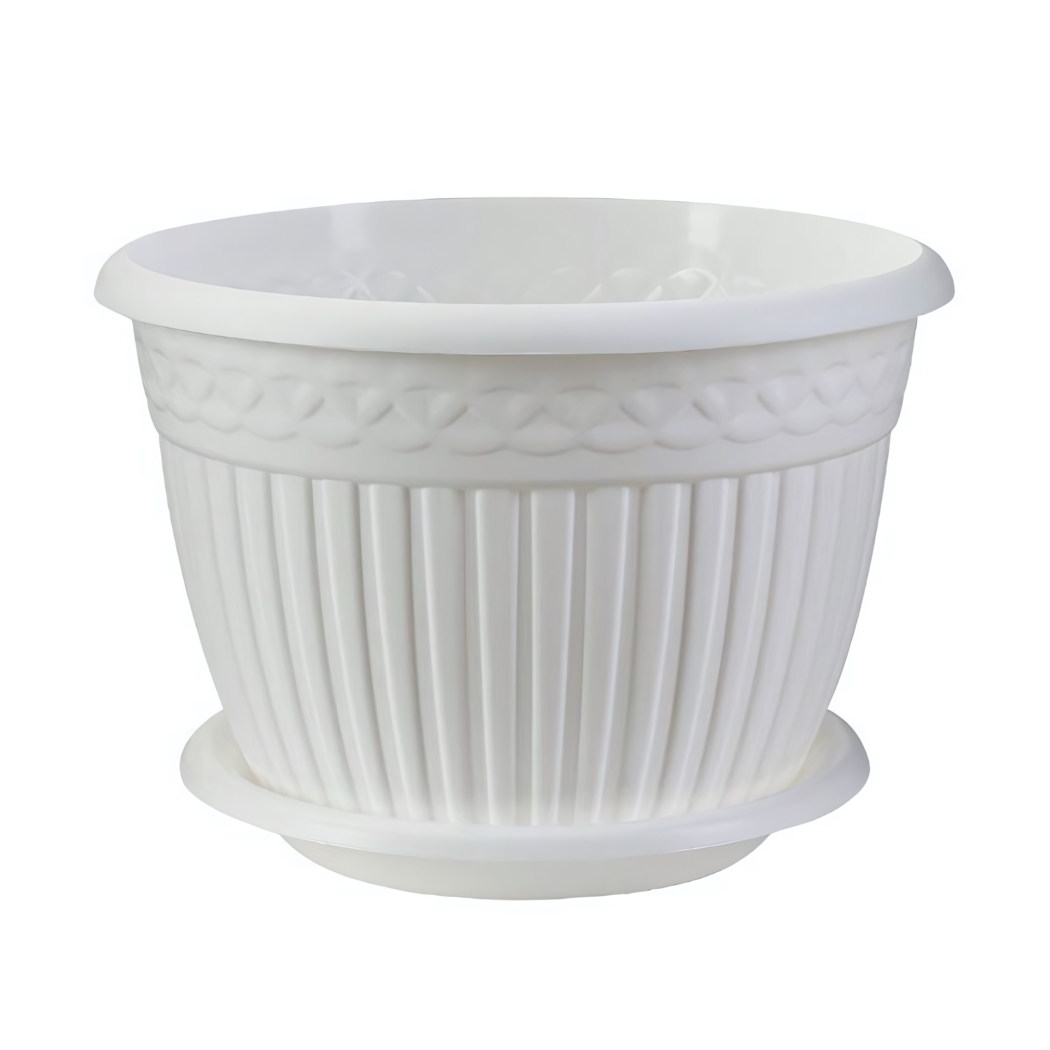 Кашпо "Византия" объемом 15 литров отлично подойдет для выращивания комнатных и уличных растений. Его глянцевая белая поверхность и рельефный узор создают эстетический уют и подчеркнут ваш стиль интерьера или экстерьера. В комплект входит блюдце, которое предотвращает протекание воды и защищает поверхность от влаги.