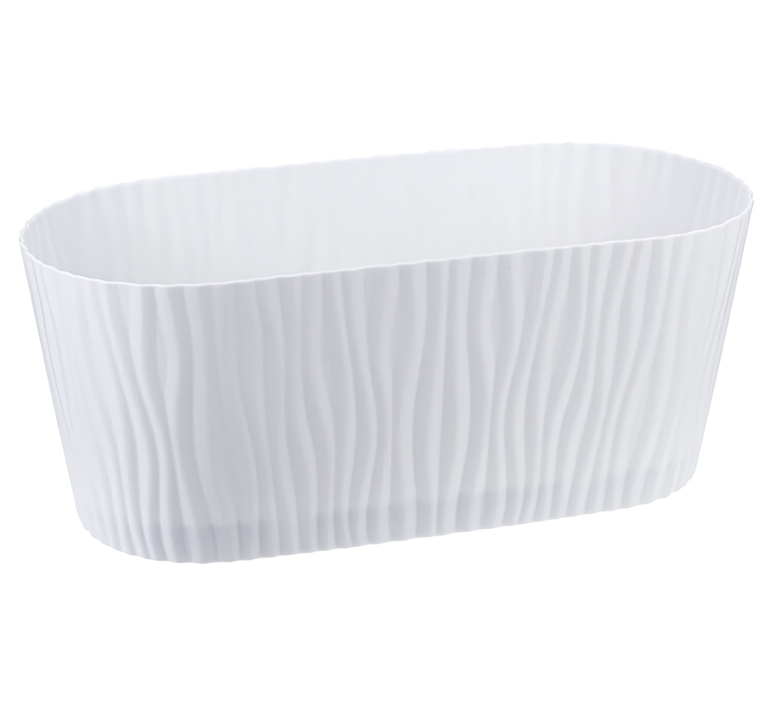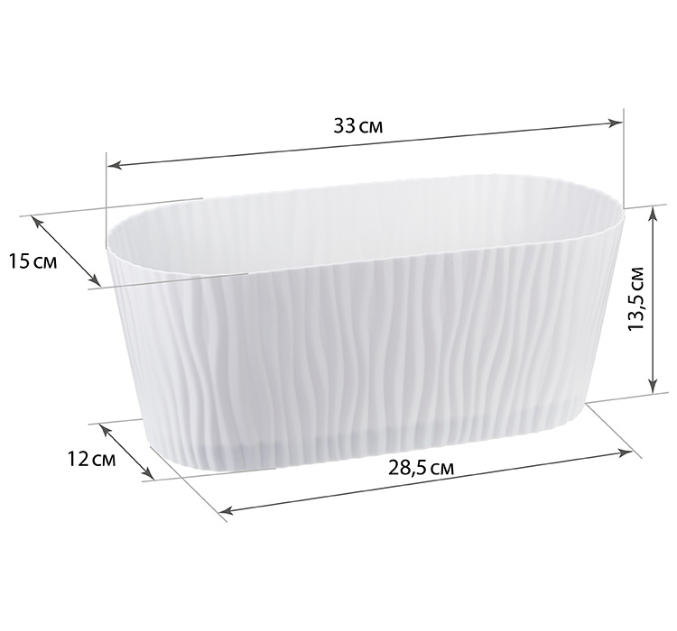 В комплекте — съёмный вкладыш, который помогает поддерживать оптимальную влажность почвы и обеспечивает правильный дренаж. Такой подход защищает корневую систему от переувлажнения, уменьшает потребность в частых поливах и полностью исключает риск гниения. Простые формы и волнообразная текстура превращают кашпо в выразительную деталь интерьера, а белый цвет легко впишется в любой стиль комнаты.