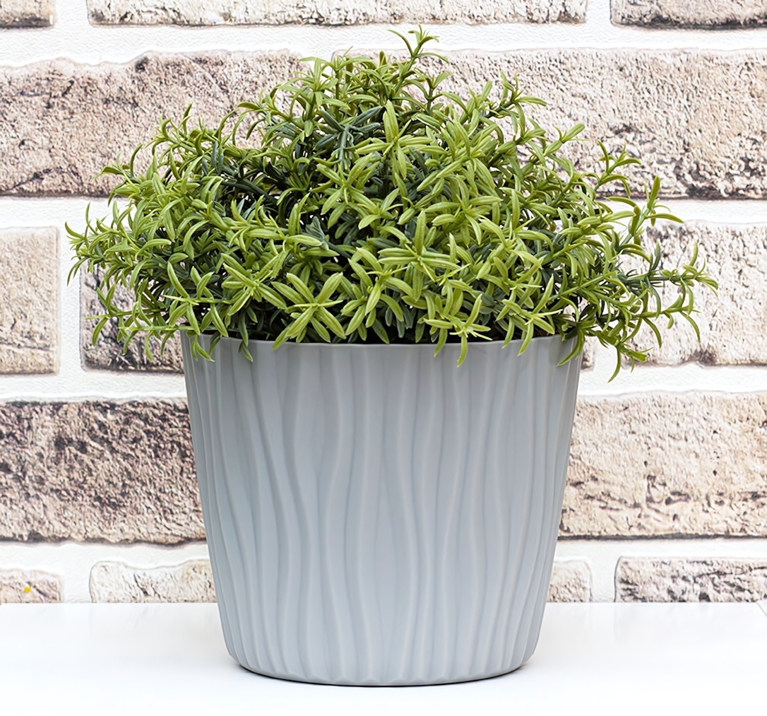 Кашпо пластиковое "Волна" с вкладышем, 16см, серый, для интерьерных растений