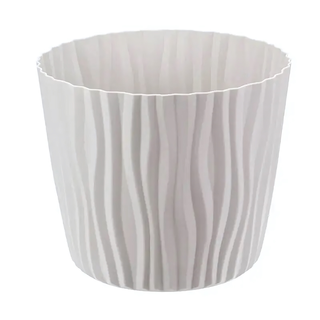 Кашпо пластиковое 'Волна' с вкладышем, D200мм, 4л, кремовый, уникальный дизайн