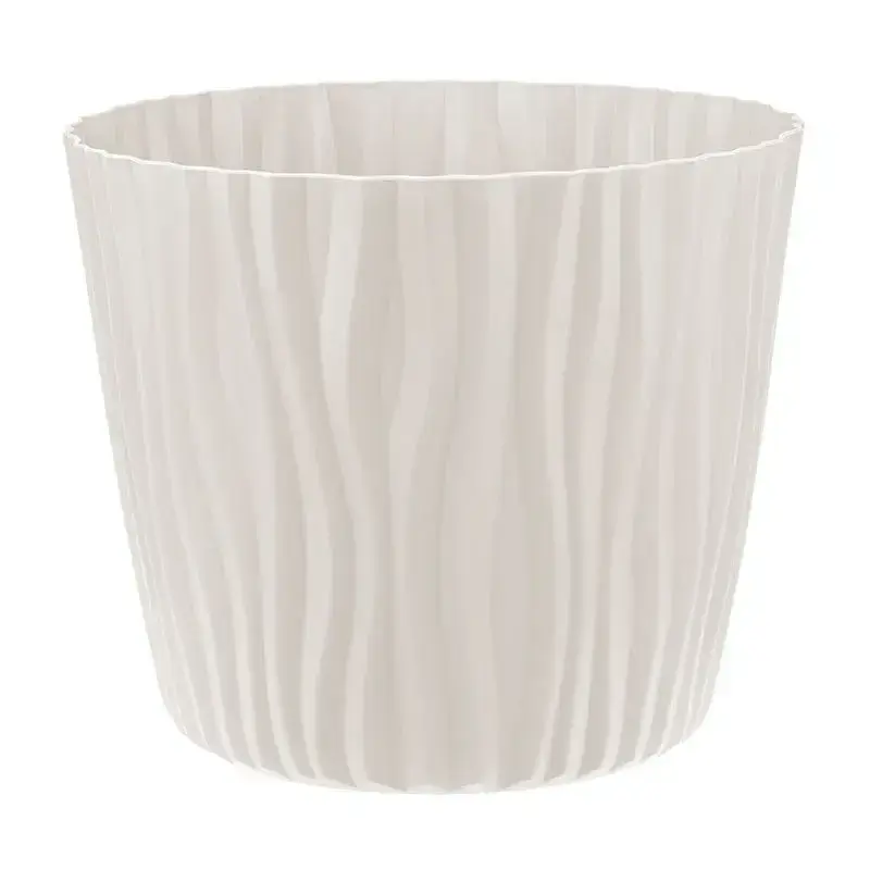 Кашпо ВОЛНА станет стильным и практичным дополнением вашего интерьера или садового участка. Элегантный кремовый цвет и текстура, имитирующая натуральное дерево, создают неповторимый уют.