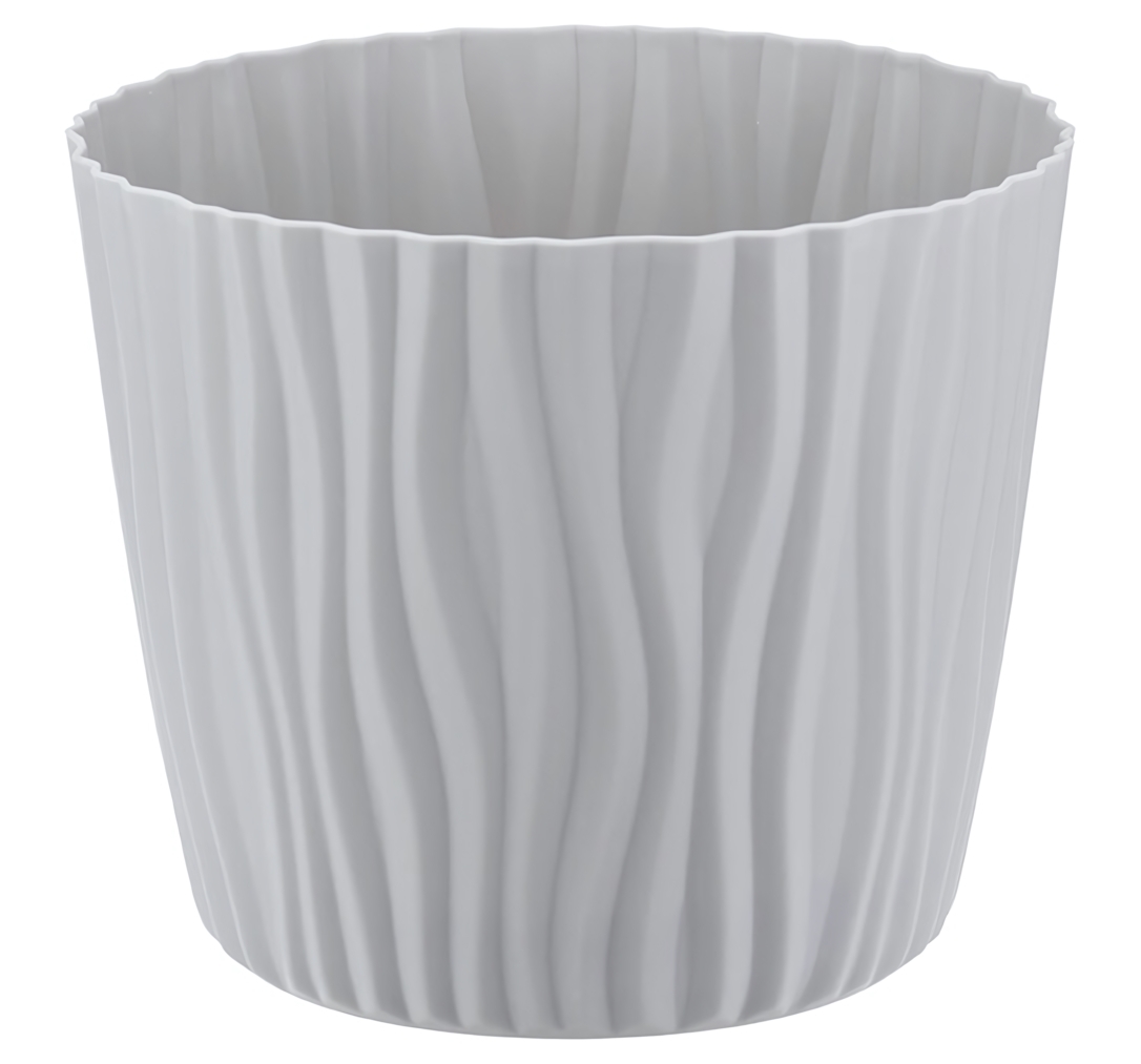 Рифлёная поверхность с вертикальными волнами маскирует следы эксплуатации и добавляет фактурности интерьеру. Укомплектован готовым к использованию — просто установите растение во вкладыш и разместите в кашпо.