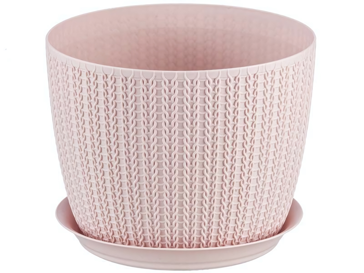Кашпо «вязание» объемом 4,5 л — практичное решение для комнатных растений, которое помогает поддерживать порядок и создавать уют в интерьере. Нежный оттенок чайной розы добавляет тепла пространству, а рельефная фактура делает горшок выразительным декоративным акцентом.