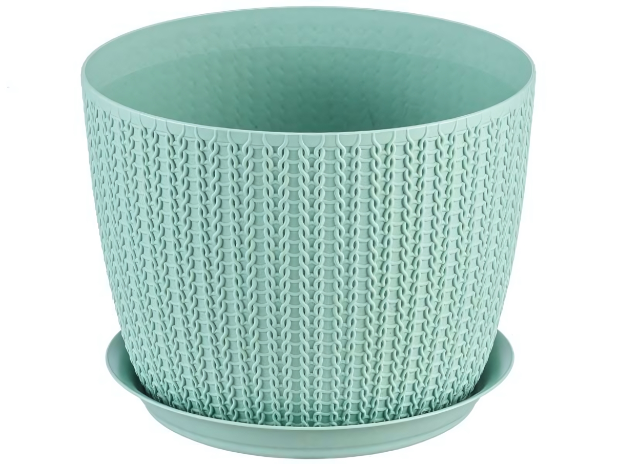 Кашпо Вязание D210мм 4,5л с поддоном (Фисташковый) • современное кашпо, украшенное нежной вязкой, подчеркивает красоту цветов и добавит уюта вашему интерьеру • кашпо из прочного пластика не боится прямых солнечных лучей и перепадов температур • объем - 4,5 л