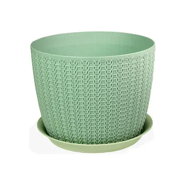 Кашпо пластиковое с поддоном, комплект 12 шт, фисташковый, D135мм, 1,1л