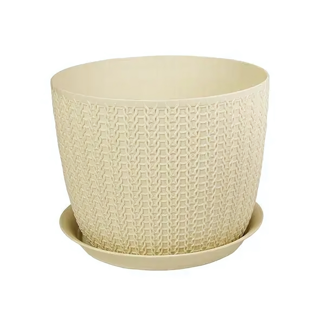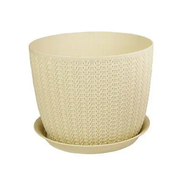 Кашпо пластиковое с поддоном, стильный дизайн, диаметр 155мм, объем 1,9л, цвет бежевый