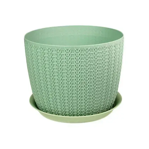 Кашпо с поддоном «Вязание» 1,9л, фисташковый, D155мм, комплект 20 шт