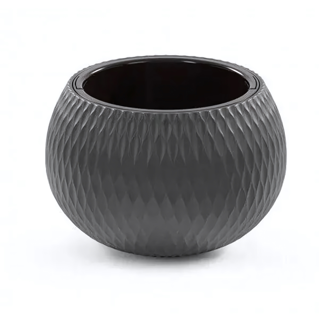 Кашпо 'Жемчужина' станет стильным акцентом в интерьере и на улице. Его современный графитовый цвет и рифленая текстура создают эффектную поверхность, которая подчеркнет красоту любых растений.