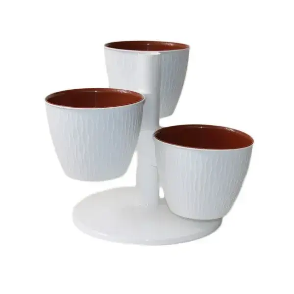 Кашпо-пирамида «ПИРАМИДА» для вертикального озеленения, 3 пластиковых горшка на подставке, белый