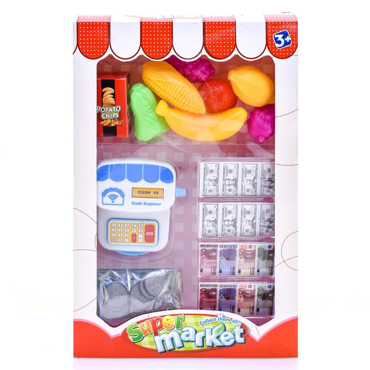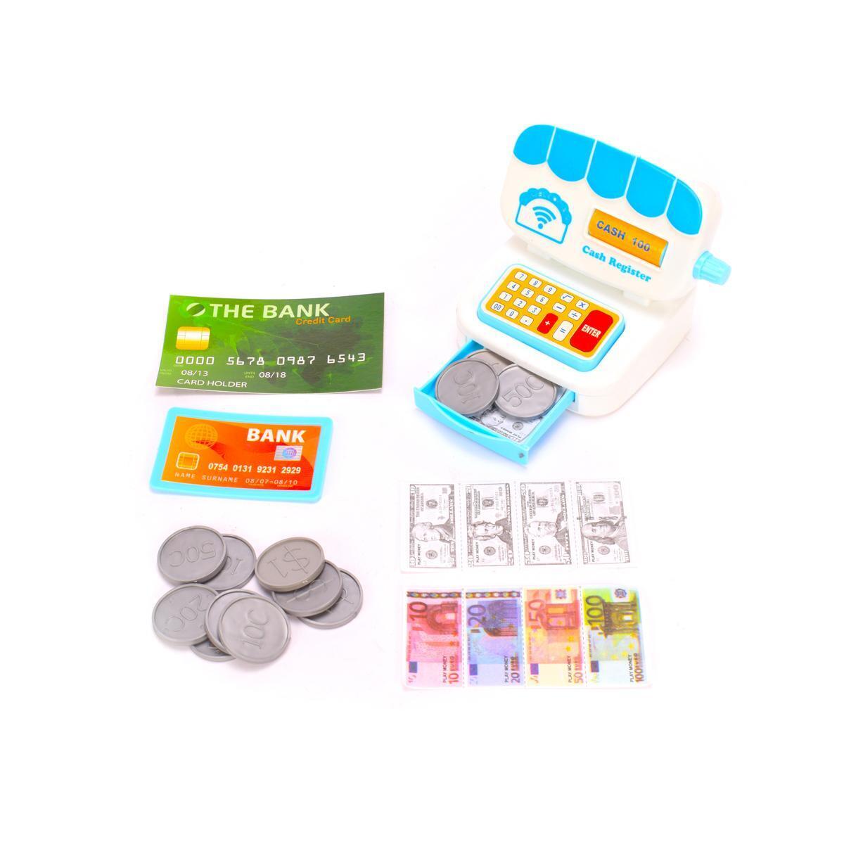 Этот комплект включает в себя реалистичную кассу с яркими кнопками, дисплеем и выдвижным ящиком для денег, а также пластиковые деньги, кредитные карточки и игровые купюры, что позволяет детям имитировать покупки и развивать навыки счета и коммуникации.