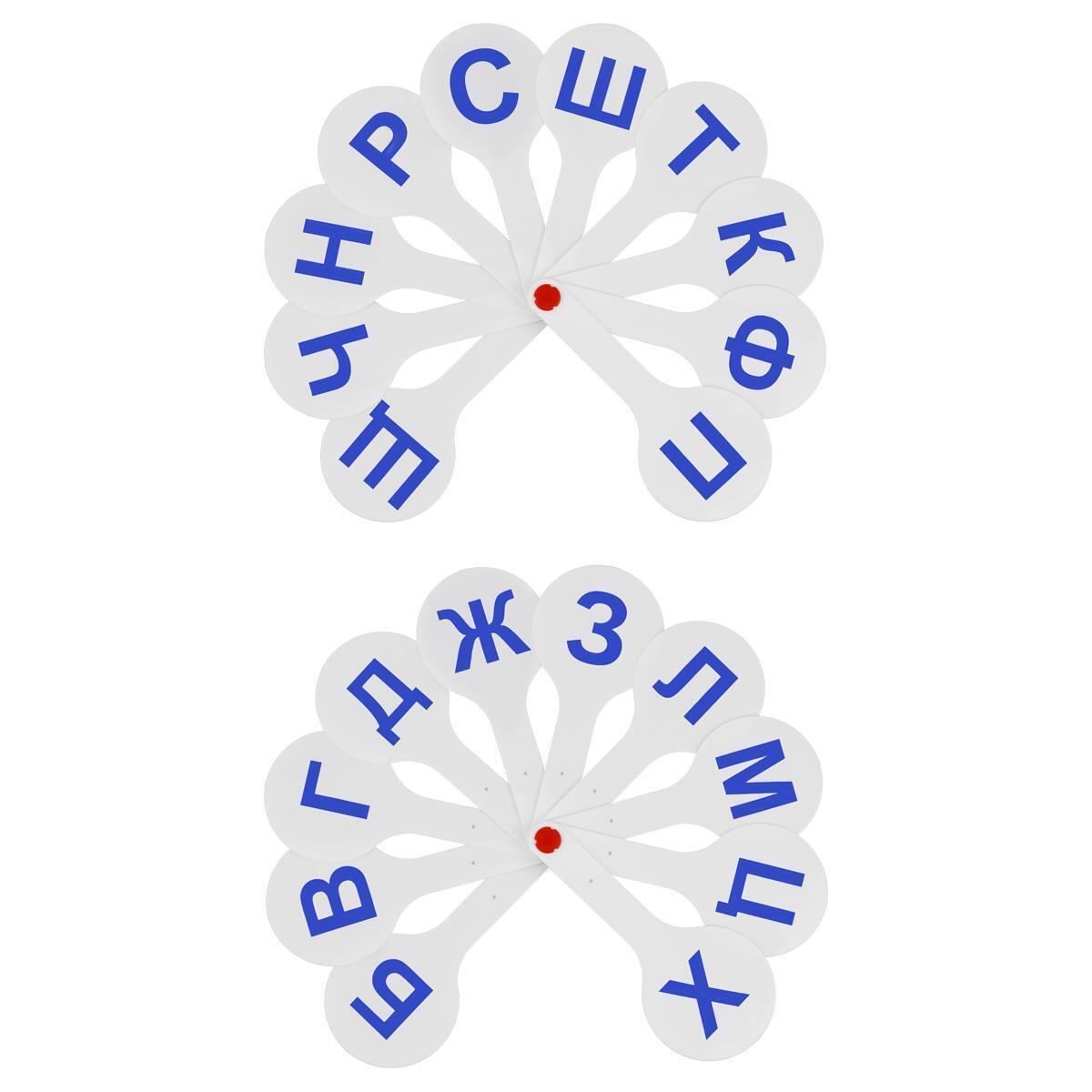 Касса-веер согласные буквы "Стамм", белые карточки с синими буквами, для обучения